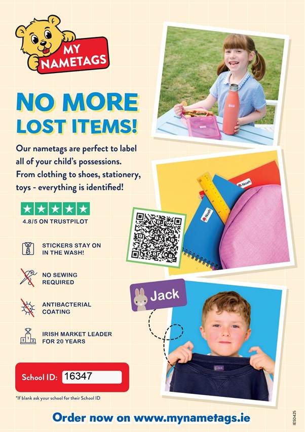 To assist with fundraising and help reduce the level of lost property the PGSA has signed up to MyNameTags.ie school programme.