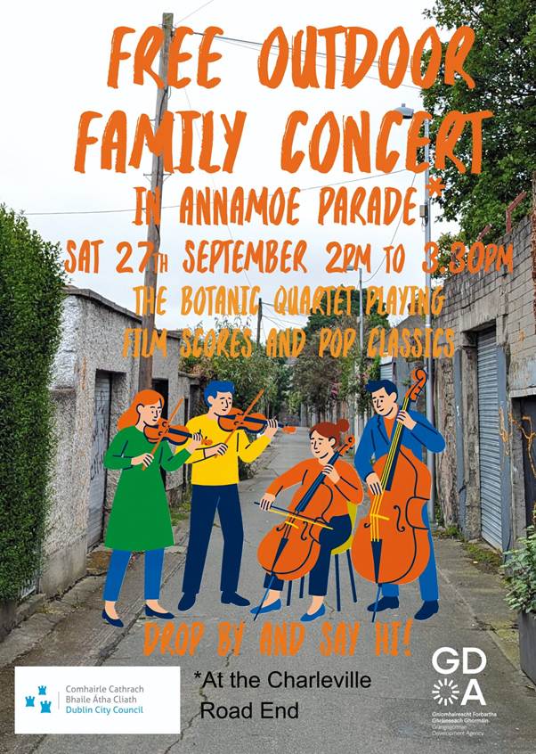 Next Saturday, Saturday the 27th of September, there will be a free outdoor family concert from 2 – 3.30pm to celebrate the space. All welcome.