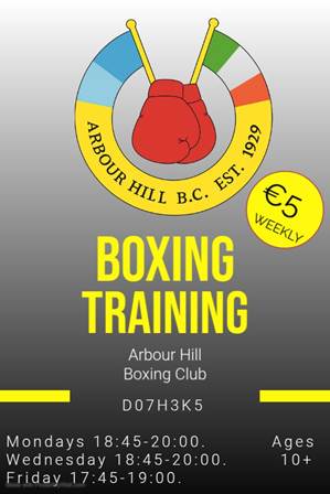 Arbour hill Boxing Club in Dublin 7, a local community-based boxing club, have asked me to share information about their youth boxing programme for boys and girls aged 10 years and above.