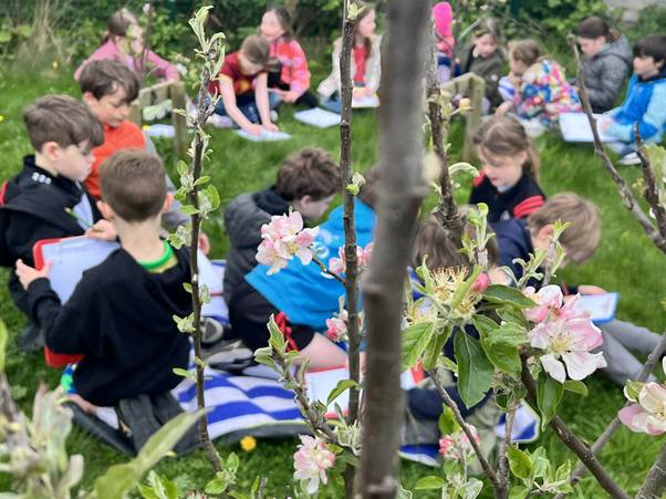 Grainne & Marie’s Second class enjoyed a trip to the Úlla Orchard today. We have been learning about the life cycle of apple trees and loved having an opportunity to sketch the one we planted in Junior Infants with Donna.