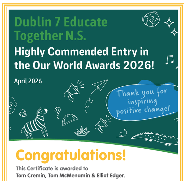 We are delighted to hear this week that our school’s entry for the Our World Awards 2026 was highly commended. The judges said our project was very close to being shortlisted for the finals, and it stood out as a particularly strong submission in a very competitive year.