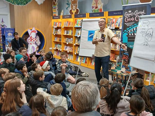 On Wednesday, all of our 6th Class students took a very exciting trip to Dubray Bookshop on Mary Street for a special author event with the brilliant Alan Nolan. Alan introduced us to his brand-new book, The Grand Central Cinema Club, and shared the stories and ideas that inspired it.